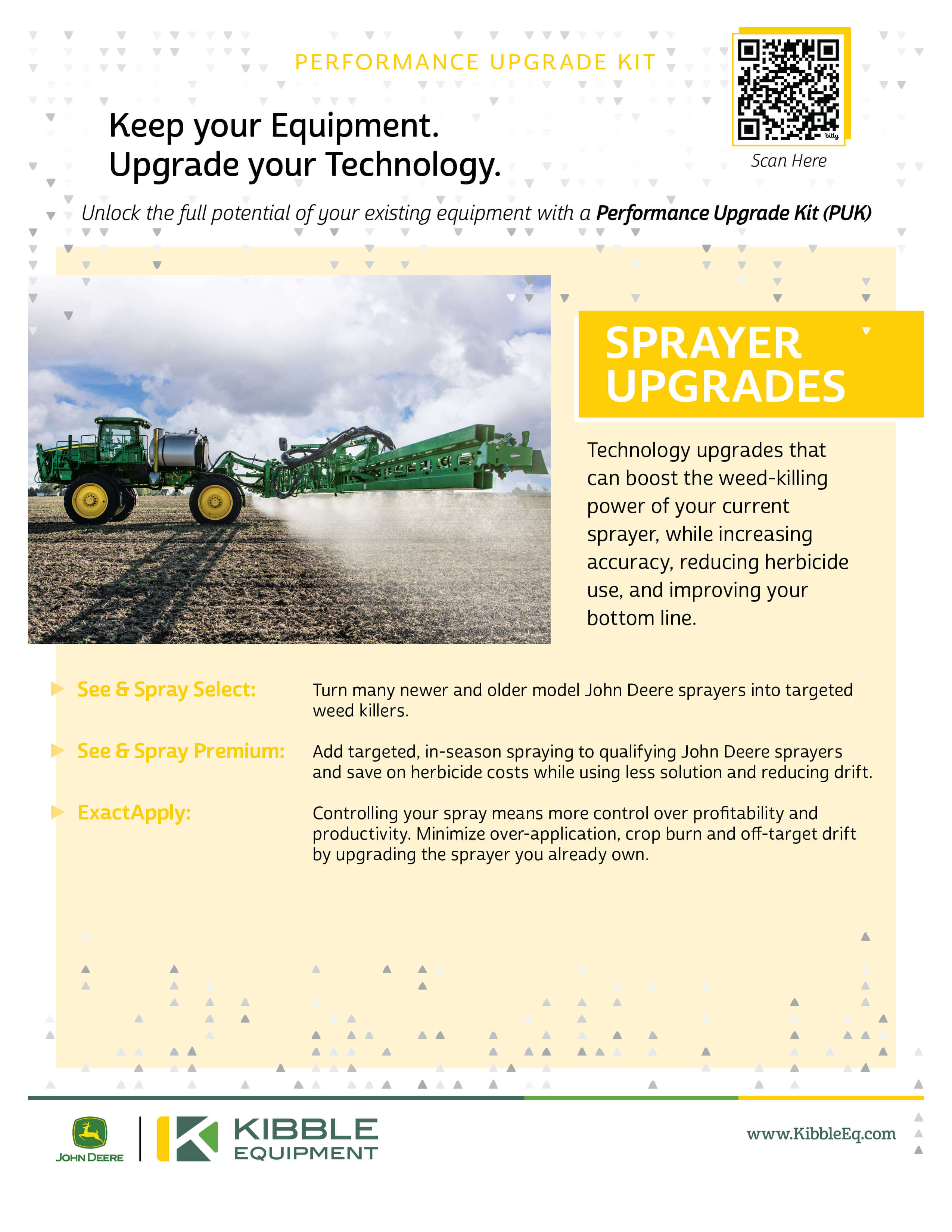 From targeted spraying solutions to enhanced application control, John Deere Performance Upgrade Kits (PUKs) make it easy to upgrade your existing sprayer without buying new.